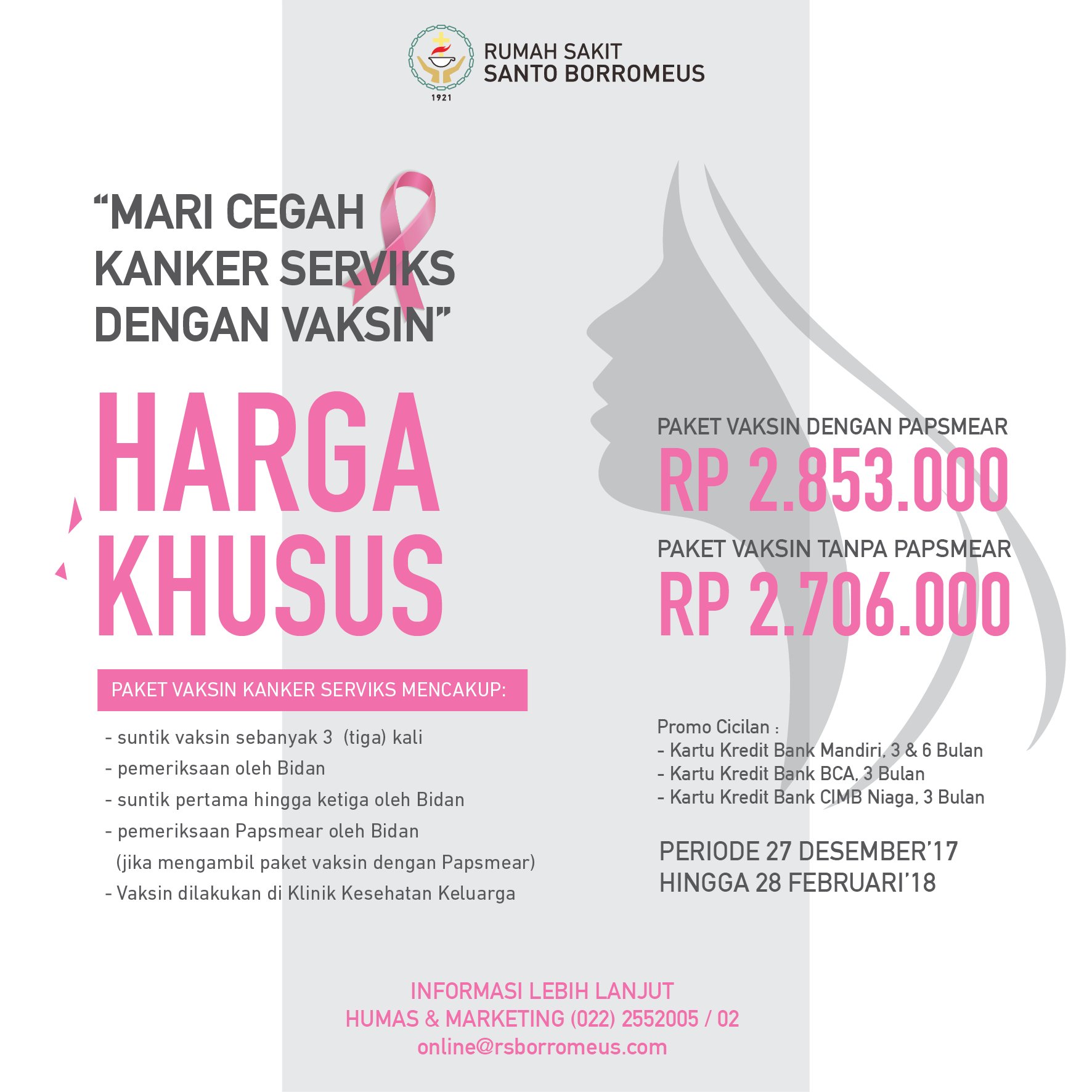 Rumah Sakit Santo Borromeus Twitterren Healthy People Khususnya Wanita Yuk Cegah Kanker Serviks Dengan Vaksin Harga Khusus Paket Vaksin Kanker Serviks Masih Berlaku Hingga 28 Februari 2018 Informasi Detail Klinik Kesehatan Keluarga